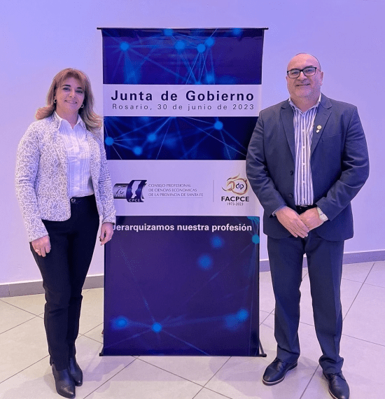 El pasado viernes 30 de junio, participó de la Reunión de Junta de Gobierno en representación de nuestro Consejo Profesional, la Cra. María Dolores Escrihuela, Secretaria del Consejo Directivo, junto al Cr. Gustavo Mattos, como representante de la Comisión Fiscalizadora.