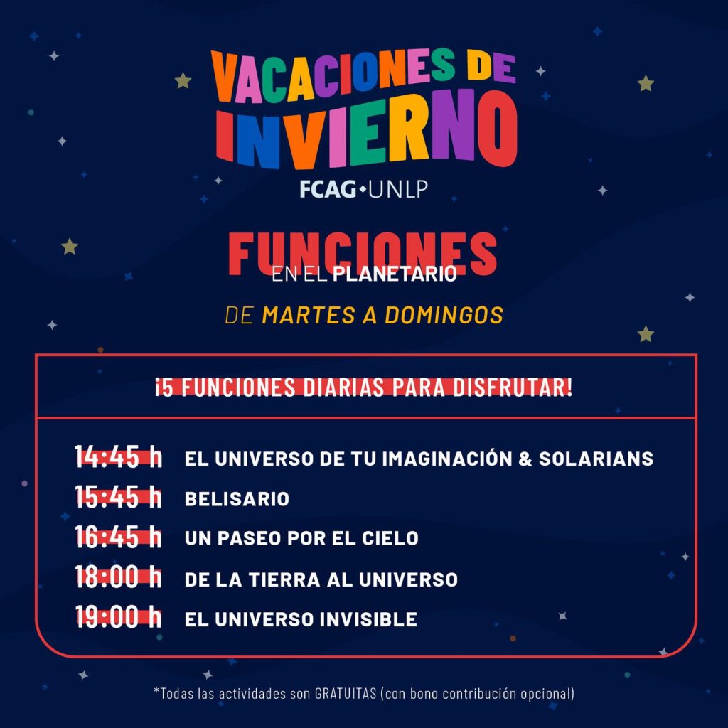 De martes a domingo, se programaron 5 funciones diarias para disfrutar. Además, habrá visitas institucionales entre cada proyección y observaciones astronómicas.