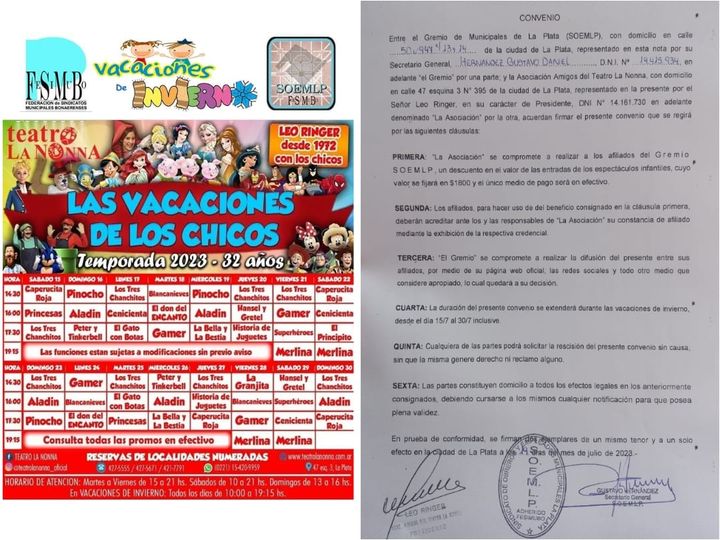 En el día de la fecha se firmo un convenio con el TEATRO LA NONNA. El mismo consta de un descuento exclusivo en las entradas de las obras de teatro infantiles para nuestros afiliados y afiliadas y su grupo familiar.