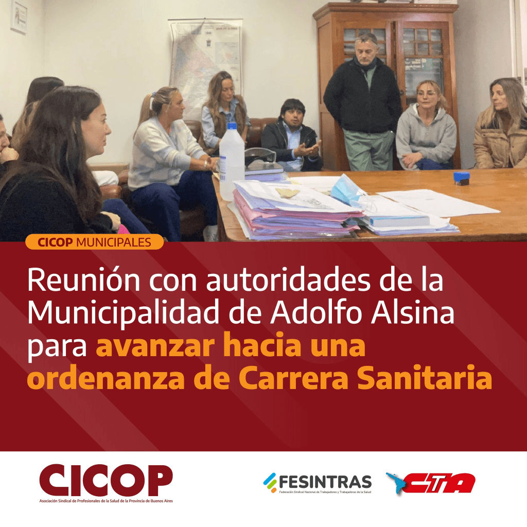 El secretario de Asuntos Municipales de la Asociación Sindical de Profesionales de la Salud de la Provincia de Buenos Aires (CICOP), Martín Mayo Segurado, acompañó a la Seccional Adolfo Alsina del gremio el pasado jueves 13 de julio en una reunión con la directora de Salud de ese municipio, Diana Otero, y con el director del Hospital Municipal de Carhué, Marcelo Lanzillota.