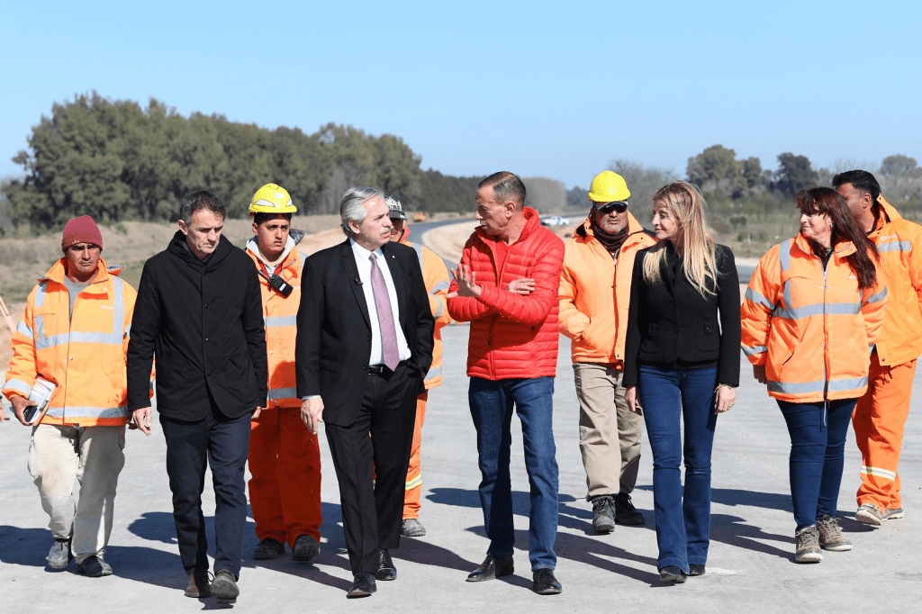 Acompañado por la intendenta local, Marisa Fassi; el administrador general de Vialidad Nacional, Gustavo Arrieta, y el subadministrador, Alejandro Urdampilleta, el mandatario supervisó el avance de las obras de la variante, que forma parte del proyecto de transformación en autopista de la Ruta 3 en una traza de 9,6 kilómetros de extensión, mediante una inversión de 13.414 millones de pesos.