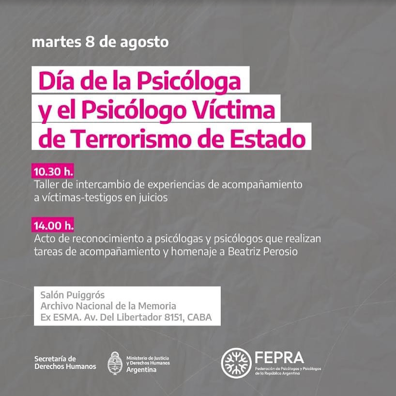 Actividad por el Día de la Psicóloga y el Psicólogo Víctima de Terrorismo de Estado.