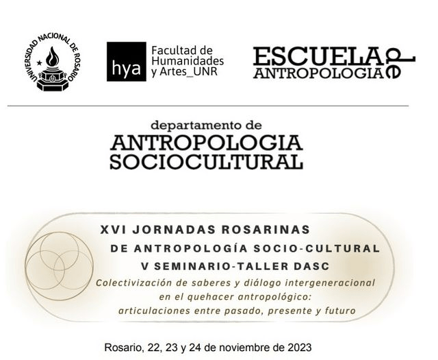 El Departamento de Antropología Sociocultural de la Escuela de Antropología de la Universidad Nacional de Rosario les invita a participar de las XVI Jornadas Rosarinas de Antropología Socio-cultural + V Seminario-Taller DASC a realizarse los días 22, 23 y 24 de Noviembre de 2023.