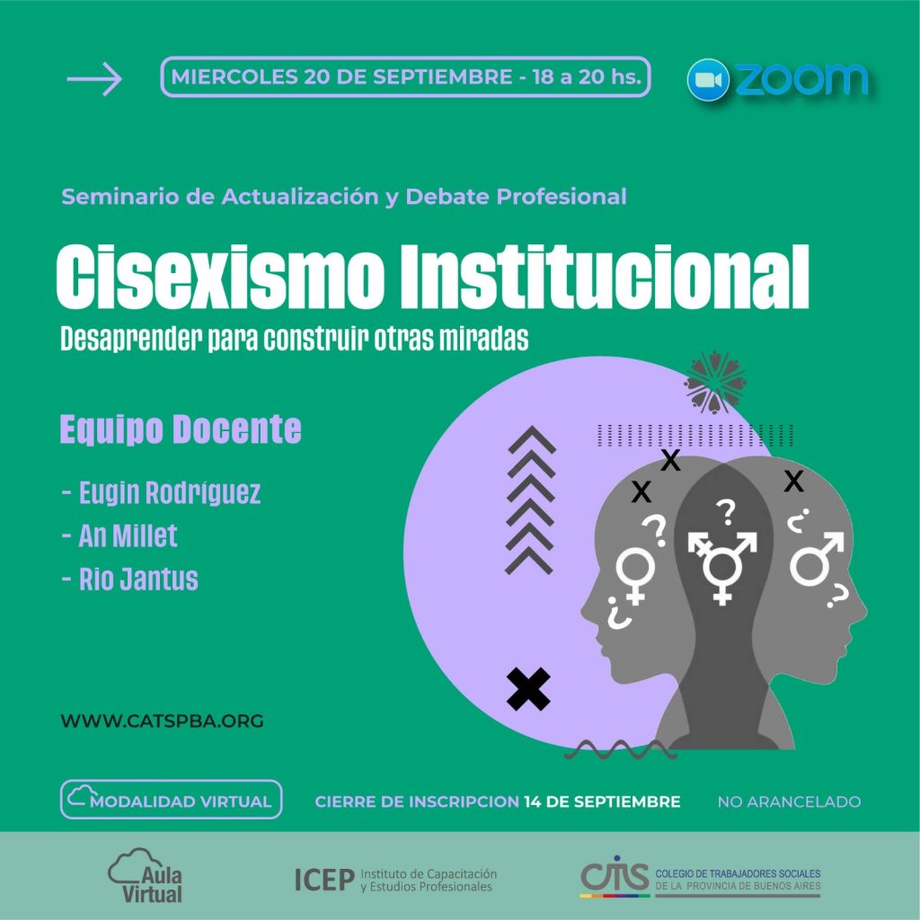 Nos resulta necesario colectivizar herramientas para construir espacios de reflexión que promuevan el análisis de las lógicas y mecanismos que se reproducen de forma natural y automática en todos los ámbitos con especial interés en aquellos lugares en donde nos insertamos y ejercemos la profesión lxs trabajadorxs sociales. Reflexionar, a su vez, sobre los tránsitos institucionales y la cotidianeidad del quehacer profesional mediada por las diversas formas de expresión que adquiere el cisexismo articulado con otras formas de opresión como el racismo, el capacitismo, el edadismo, el pesocentrismo y el capitalismo, entre otras. Por lo que se hará énfasis en la necesidad de que los análisis se lleven a cabo desde un posicionamiento interseccional.