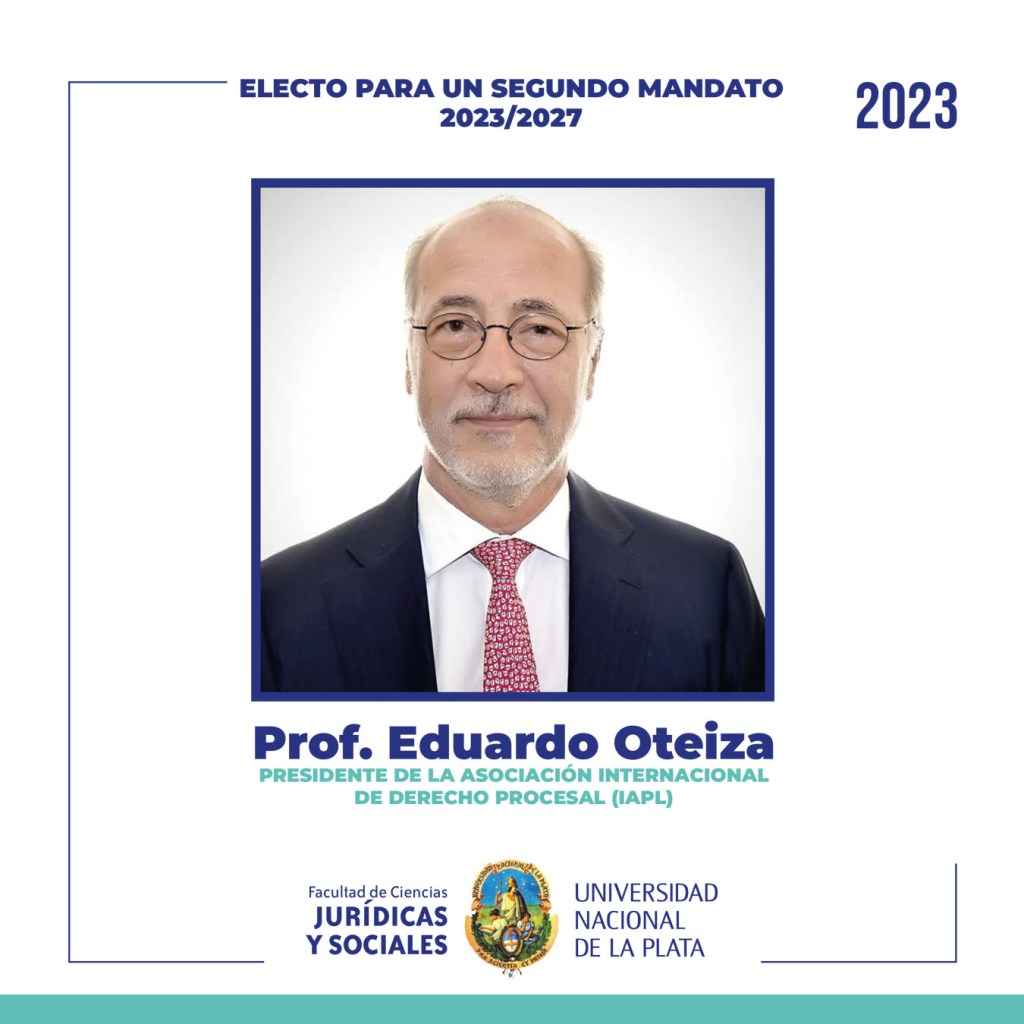 En el día de la fecha, la Facultad de Ciencias Jurídicas y Sociales informa que en la reunión del Consejo de la Asociación Internacional de Derecho Procesal celebrada en el día de ayer en Lima, se ha decidido la continuidad del Prof. Eduardo Oteiza, profesor titular ordinario de Derecho Procesal II en la Facultad de Ciencias Jurídicas y Sociales de la Universidad Nacional de La Plata desde el año 2000 y quien dirige tambien en nuestra casa de estudios la carrera de la Maestría en Derecho Procesal desde el 2013; como Presidente de la entidad por el período 2023-2027.