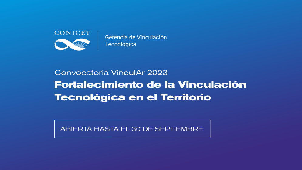 El Consejo Nacional de Investigaciones y Técnicas (CONICET), a través de su Gerencia de Vinculación Tecnológica (GVT), lanza la Convocatoria VinculAr 2023 “Fortalecimiento de la Vinculación Tecnológica en el Territorio”, con el objeto de promover encuentros tecnológicos para tender puentes entre la ciencia, la industria y los sectores cooperativos, buscando acortar la distancia entre el saber científico tecnológico y las demandas sociales.