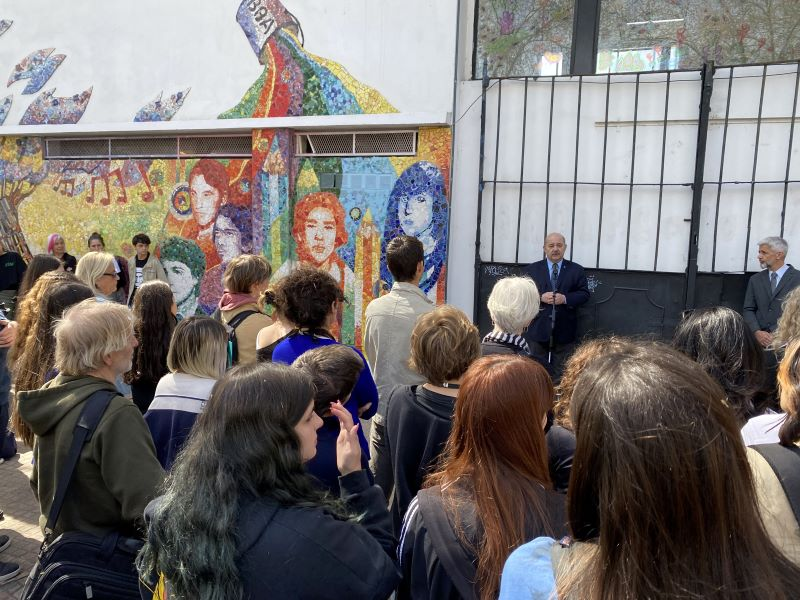 El vicepresidente Académico de la Universidad Nacional de La Plata, Fernando Tauber, participó este mediodía de la inauguración del mural mosaico “Bellas Artes: Memoria e identidad”, emplazado en la fachada del edificio del Bachillerato de Bellas Artes, ubicado en calle 10 entre diagonal 78 y 63.