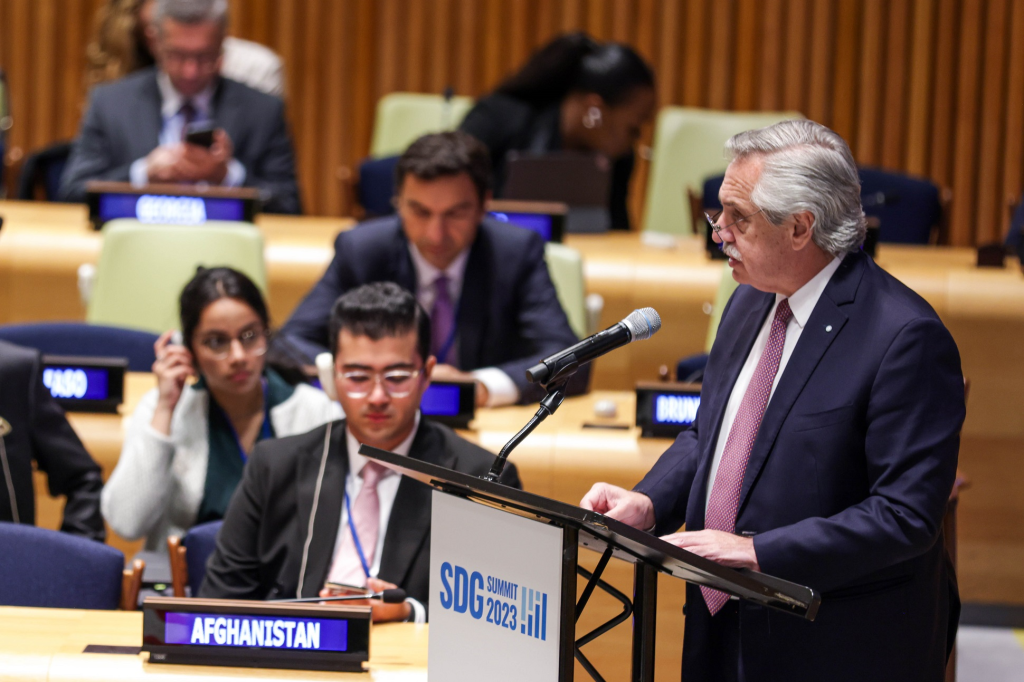 El presidente Alberto Fernández afirmó que “los logros científico-tecnológicos han sido esenciales para una recuperación transformadora con mayor igualdad y sostenibilidad ambiental”, durante su exposición en la Cumbre de los Objetivos de Desarrollo Sostenible (ODS) que se realizó en el marco de la 78º Asamblea General de Naciones Unidas que se lleva adelante en Nueva York, Estados Unidos.