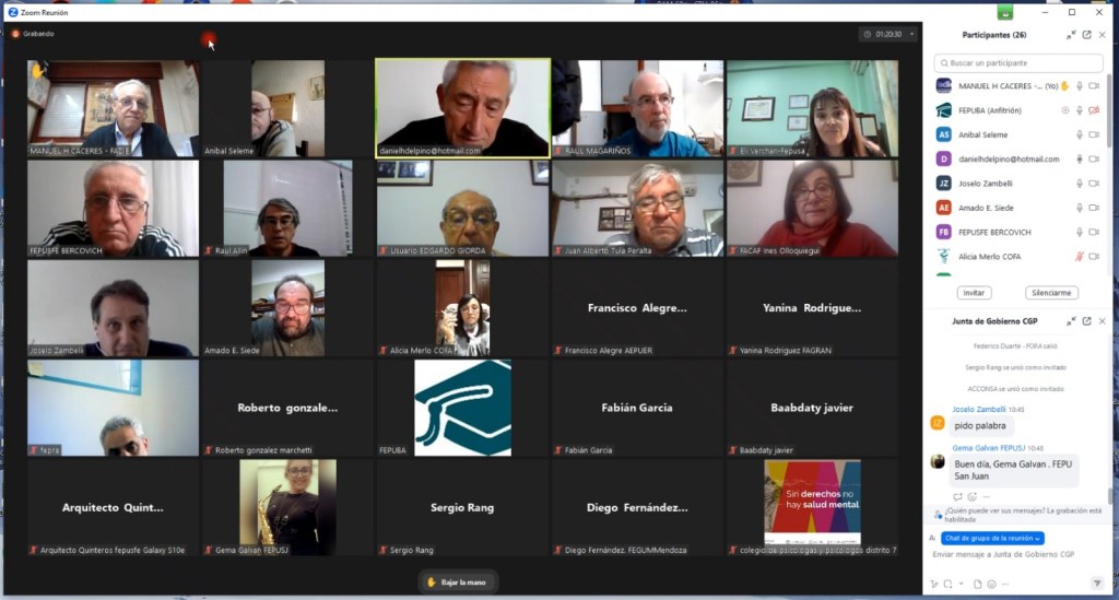 El pasado 20 de septiembre sesionó la Junta de Gobierno de la Confederación General de Profesionales de la República Argentina, con la participación de 21 federaciones provinciales y entidades de representación profesional de todo el territorio nacional.