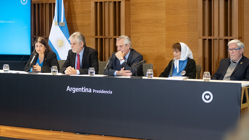 Por su parte, el presidente de la Nación, Alberto Fernández, manifestó “A los que niegan la dictadura, a los que niegan los desaparecidos, las muertes, los exilios y las torturas y que también niegan a la ciencia porque le tienen miedo al pensamiento, debemos oponerles todas las razones y muchas más para no dejarlos pasar”. Y enfatizó “estamos aquí reivindicando a hombres y mujeres que fueron cesanteados, perseguidos o desaparecidos de la faz de la Tierra por el solo hecho de pensar; para un fascista nada es más peligroso que pensar”.