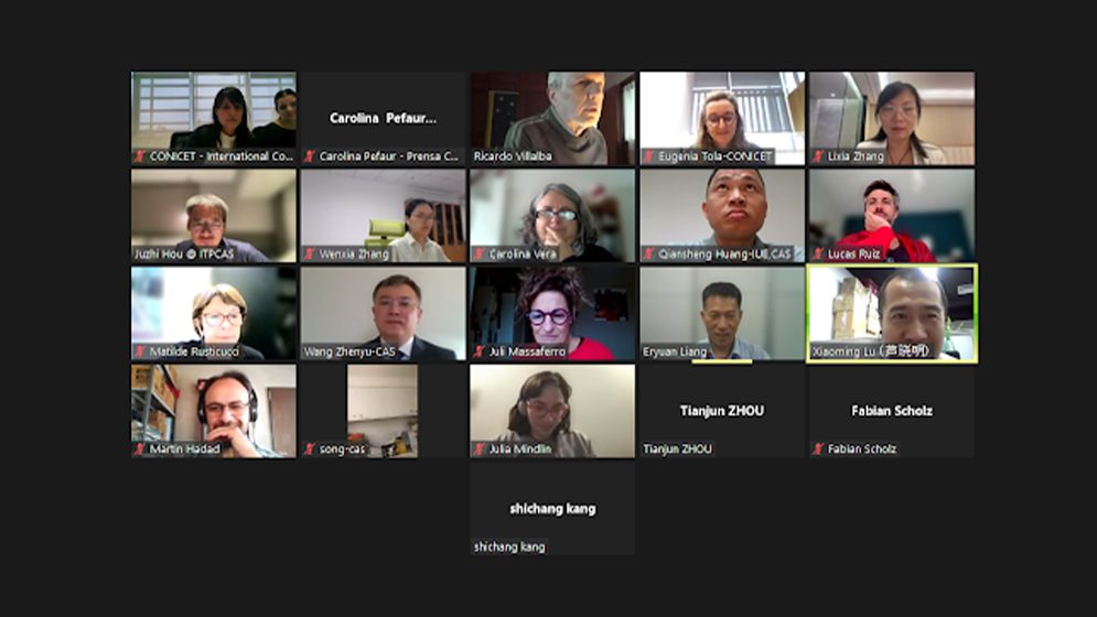 En el marco del Centro conjunto de Ciencia y Tecnología entre el Consejo Nacional de Investigaciones Científicas y Técnicas (CONICET) y la Academia de Ciencias de China (CAS, por su sigla en inglés) se llevó a cabo, de manera virtual, el primer Taller sobre Ciencias de la Tierra y de la Atmósfera. Participaron de la apertura del encuentro la responsable de Cooperación Internacional del CONICET, Eugenia Tola y el vicedirector General de Cooperación Internacional de la CAS, Wang Zhenyu.