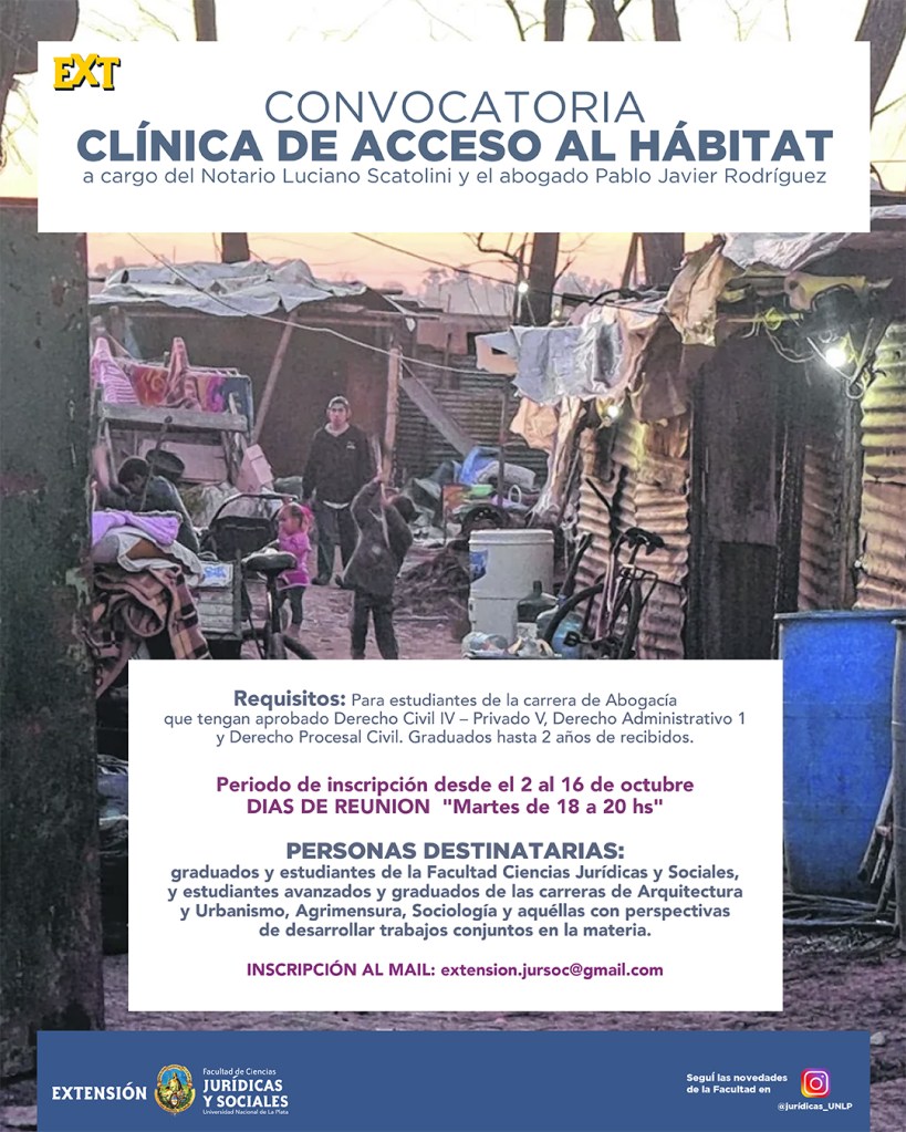 La Clínica de Acceso al Hábitat convoca a participar del espacio de extensión, a quienes estén interesados en dicha temática.