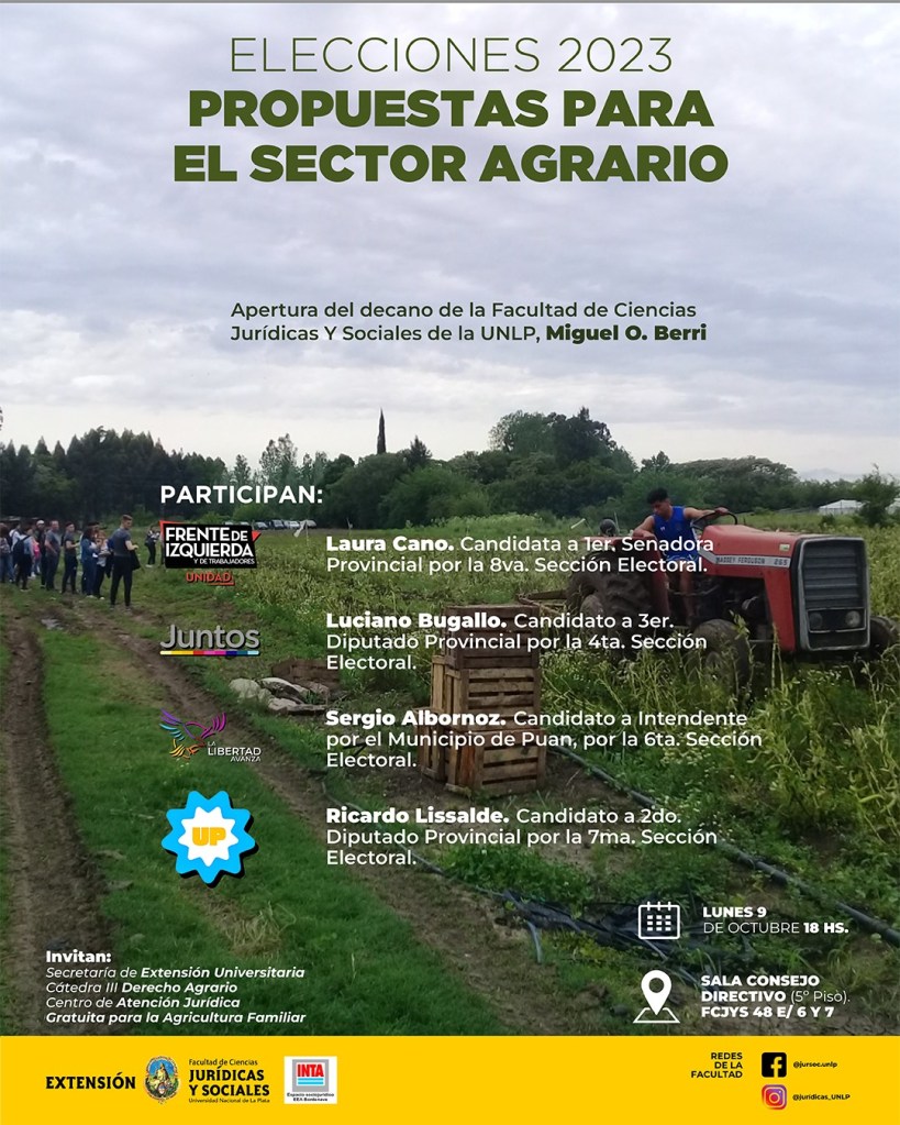 Nos encontramos la semana que viene para conocer e intercambiar sobre las propuestas para el sector agrario de las distintas fuerzas políticas que estarán participando de las elecciones del 22 de octubre.