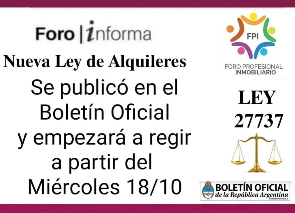 La ley 27.737, que introduce una serie de modificaciones en el Código Civil y Comercial de la Nación, comenzará a regir los contratos de alquiler celebrados a partir de este Miércoles 18/10/23.
