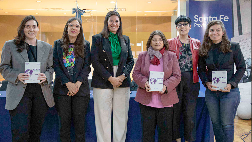 Fueron parte de la presentación Marina Baima, secretaria de Ciencia, Tecnología e Innovación de la provincia de Santa Fe; Florencia Marinaro ministra de Igualdad, Género y Diversidad; María Candelaria González del Pino, secretaria de Gestión Federal y directora de la Casa de Santa Fe en CABA y Constanza Estepa becaria del CONICET-UNR quienes compartieron que el libro surge de los informes finales presentados en el marco de la convocatoria a Becas de Movilidad con Perspectiva de Género 2021 motorizadas por los Ministerios de Producción, Ciencia y Tecnología y de Igualdad, Género y Diversidad de Santa Fe.