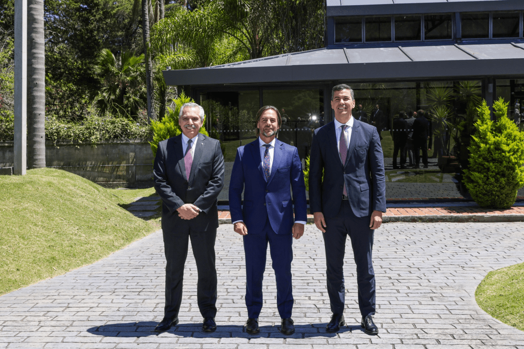 El presidente Alberto Fernández mantuvo un encuentro este mediodía en la residencia presidencial de Montevideo con sus pares de la República Oriental del Uruguay, Luis Lacalle Pou, y de la República de Paraguay, Santiago Peña, para avanzar en la organización de los partidos inaugurales del Mundial Centenario 2030, que se disputarán en estos tres países en conmemoración de la primera copa del mundo.
