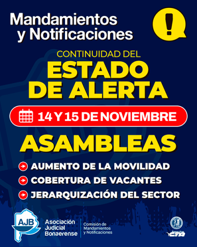 Desde la Comisión de Mandamientos y Notificaciones convocamos a las y los compañeros a mantenernos en Estado de Asambleas permanentes para construir las medidas que definamos en conjunto para la semana próxima.