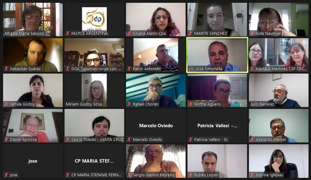 El viernes 17 de noviembre se llevó a cabo la reunión virtual de la Comisión de Sector Público de FACPCE con la Coordinación por la Mesa Directiva del Lic. José Ignacio Luís Simonella, Presidente, y del Dr. Julio Tomás Ramírez, Tesorero, y la Coordinación Técnica de la Dra. Alfreda María Salusso, contándose con la presencia del Dr. Abelardo Harbin, Director del Área Sector Público del CECyT.