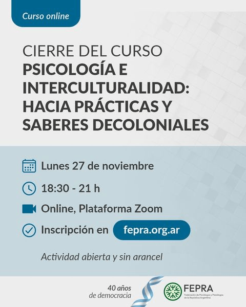Actividad en el marco del cierre de cursado del Curso «Psicología e Interculturalidad: Hacia Prácticas y Saberes Decoloniales», formación acargo de: Red de Psicología y Pueblos Indígenas Originarios de Argentina.