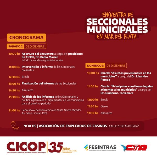 Se viene: ENCUENTRO DE SECCIONALES MUNICIPALES EN MAR DEL PLATA