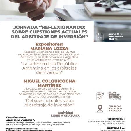 Se viene la Jornada «Reflexiones: sobre cuestiones actuales del arbitraje de inversión»
