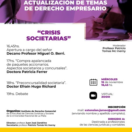 La Facultad de Ciencias Jurídicas invita a la «XIV Jornada de Actualización en Derecho Empresario: «Crisis Societaria»