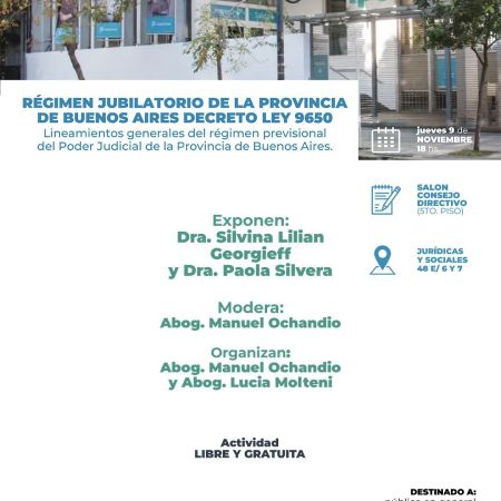 Se realizará la charla sobre «Régimen Jubilatorio de la Provincia de Buenos Aires, Decreto Ley 9650»