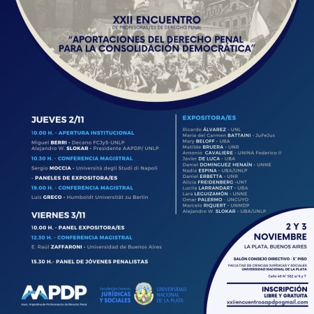 XXII Encuentro de profesoras/es de Derecho Penal «Aportaciones del Derecho Penal para la consolidación democrática»