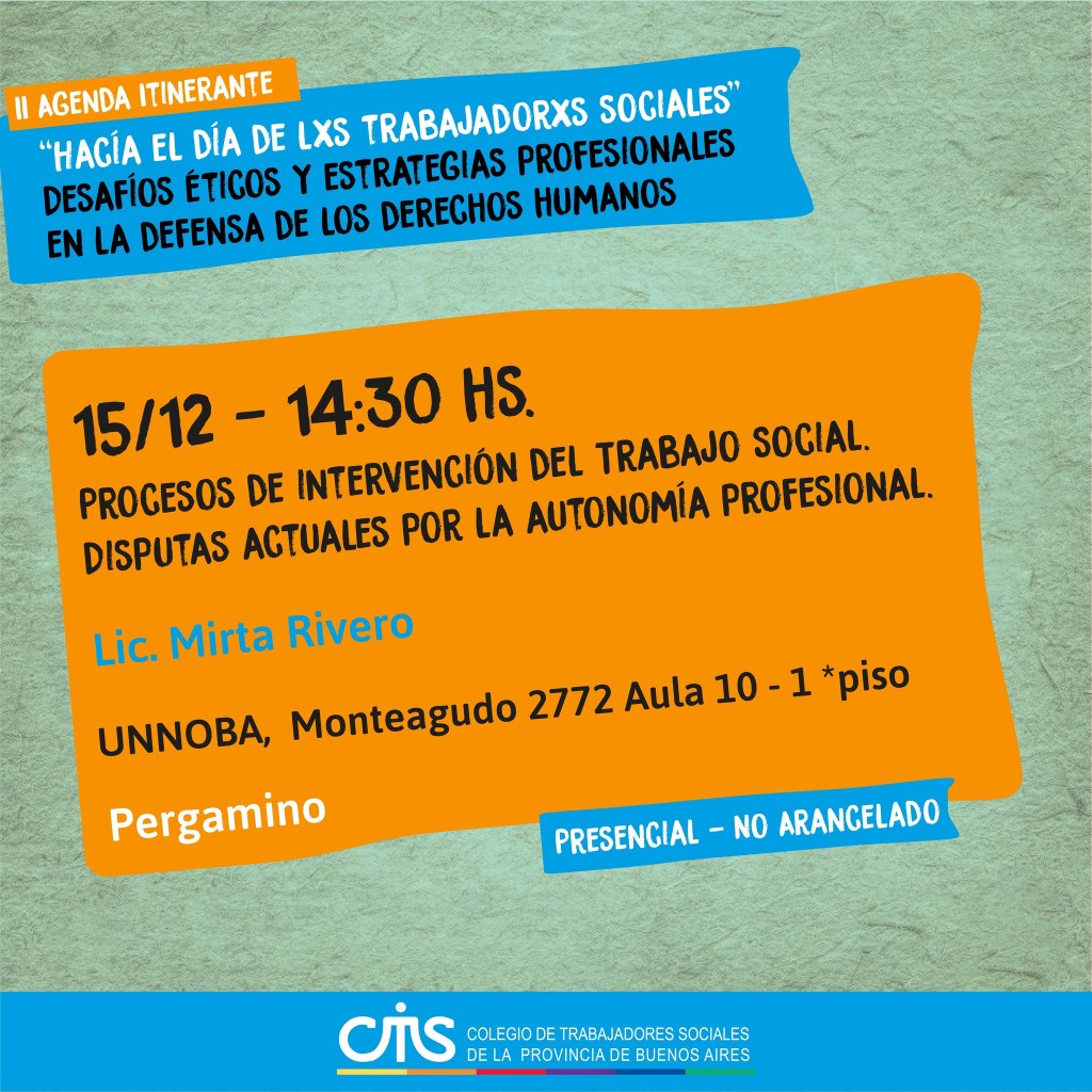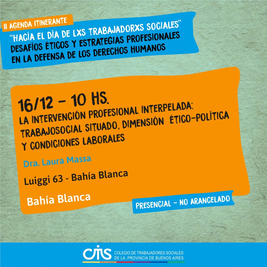 Seguimos con la II Agenda Itinerante «Hacía el día de lxs Trabajadorxs Sociales»: Desafíos Éticos y Estrategias profesionales en la defensa de los derechos humanos.