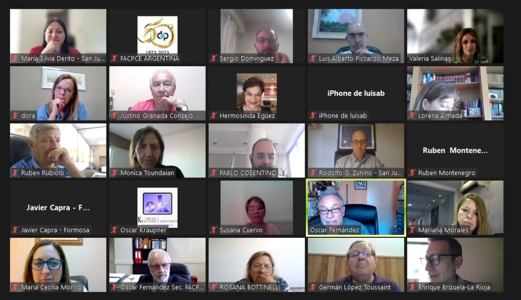 Participaron de la misma los coordinadores técnicos, el Dr. Oscar A Fernández y la Dra. Maria Silvia Derito y los coordinadores por la Mesa Directiva de la FACPCE, la Vicepresidente segunda Dra. Ada Valeria Salinas y el Secretario Dr. Oscar Fernández .