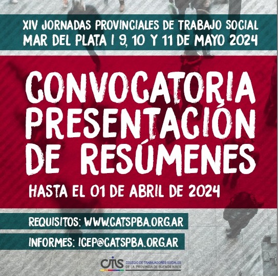 El Colegio Profesional de Trabajadorxs Sociales de la Provincia de Buenos Aires convoca a participar en las XIV Jornada provincial de Trabajo Social, VII Foro de discusión sobre las condiciones laborales de lxs trabajadorxs sociales y IV Foro de debate sobre ética en los procesos de intervención profesional del Trabajo Social.