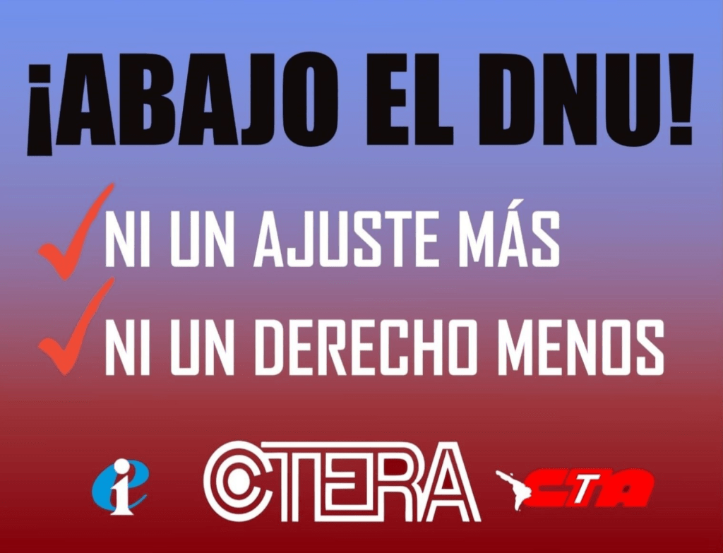Junto a la CTA de lxs Trabajadorxs y la CTERA, el SUTEBA se movilizó hoy a Plaza Lavalle para expresar su repudio al mega DNU que avasalla los derechos de lxs Trabajadorxs y vulnera la división de poderes.