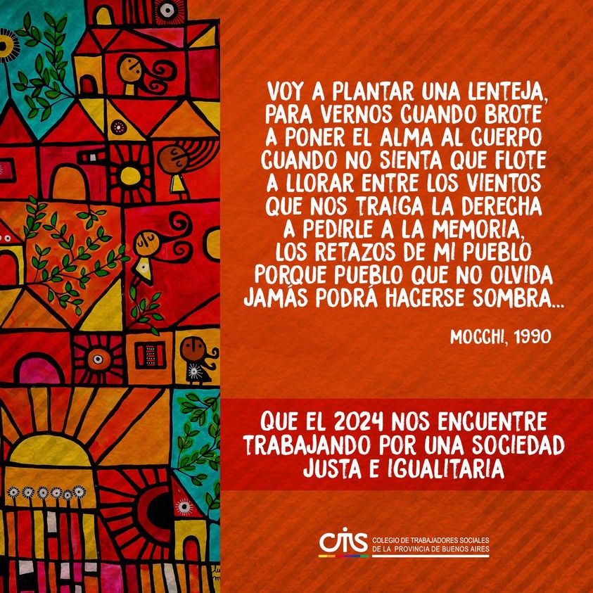 Desde la Mesa Ejecutiva del Colegio de Trabajadorxs Sociales de la Provincia de Buenos Aires, aprovechamos este cierre de año para agradecer el acompañamiento al trabajo realizado, esperando que el próximo año nos encuentre fortaleciendo el proyecto colectivo y pluralista que venimos llevando a cabo.