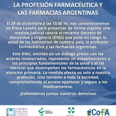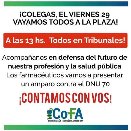 El Colegio de Farmacéuticos bonaerense convoca a sus profesionales a concentrar en Plaza Lavalle: «todos en tribunales»