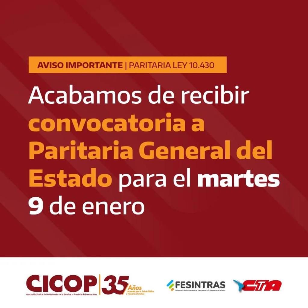 9 enero, 2024 clipurbanodenoticias Ley 10.430: el gobierno bonaerense convocó a reunión paritaria general /Fuente: CICOP/ Recibimos la convocatoria a Paritaria General del Estado para el martes 9 de enero Comparte esto: Compartir en X (Se abre en una ventana nueva) X Comparte en Facebook (Se abre en una ventana nueva) Facebook Más Compartir en LinkedIn (Se abre en una ventana nueva) LinkedIn Compartir en Tumblr (Se abre en una ventana nueva) Tumblr Haz clic en Pinterest (Se abre en una ventana nueva) Pinterest Compartir en Telegram (Se abre en una ventana nueva) Telegram Compartir en WhatsApp (Se abre en una ventana nueva) WhatsApp Me gusta Cargando...