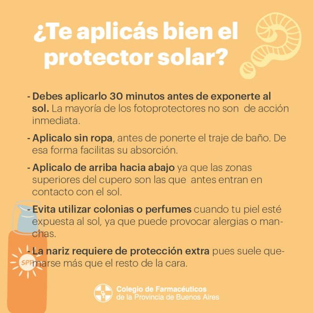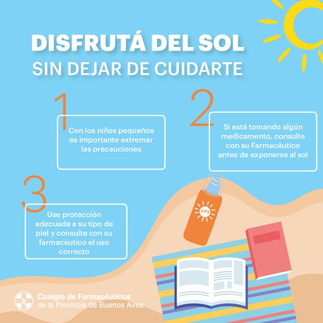 Los farmacéuticos bonaerenses nos sumamos un año más a la campaña de prevención frente a los daños que produce el sol, a fin de concientizar a la población sobre la importancia de protegerse y prevenir la aparición del cáncer cutáneo