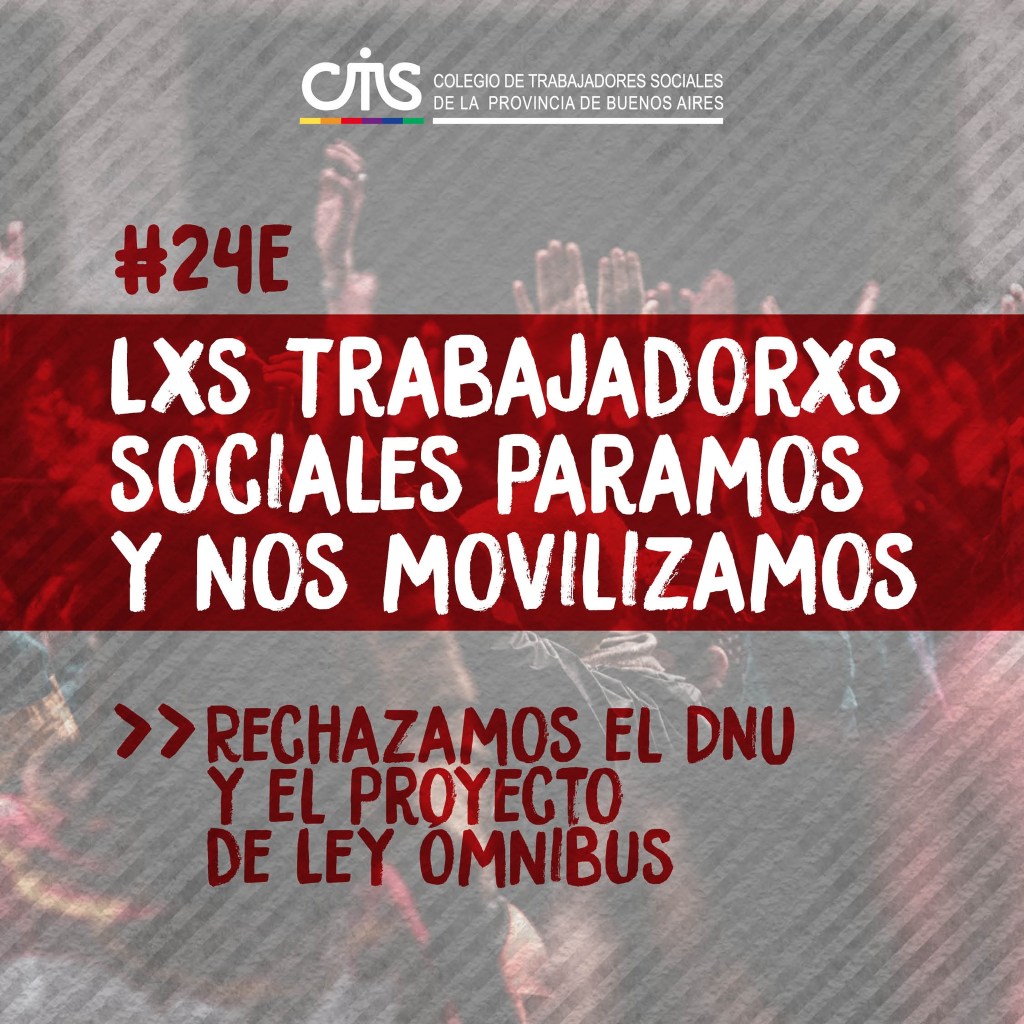 Desde el CATSPBA convocamos al colectivo profesional a participar de las diversas actividades organizadas en los diferentes puntos del país en el marco del paro general del 24 de enero.