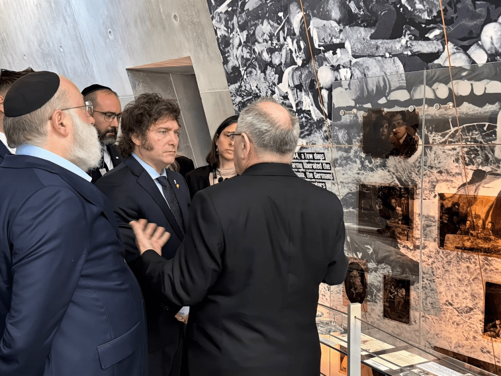 El presidente Javier Milei visitó, como parte de su visita a Israel, el Museo del Holocausto Yad Vashem y el Bosque Keren Kayemet LeIsrael en Jerusalén, acompañado por la secretaria general de la Presidencia, Karina Milei; la ministra de Relaciones Exteriores, Comercio Internacional y Culto, Diana Mondino, y el embajador designado en Israel, rabino Axel Wahnish.