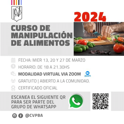 El Ente Sanitario del CVPBA ofrece nuevas fechas para el curso de Manipulación de Alimentos de forma GRATUITA y ONLINE.