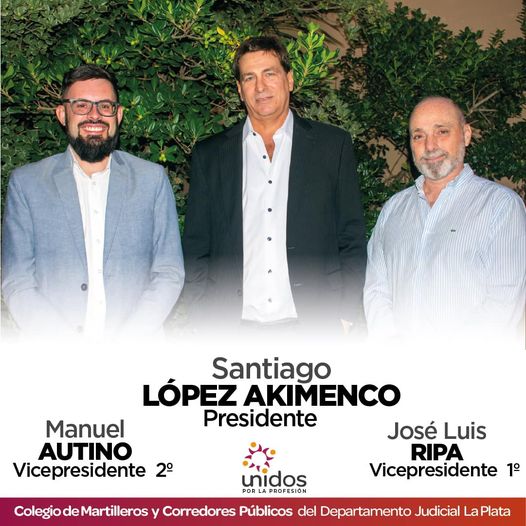 El próximo 21 de marzo se llevarán a cabo las elecciones en el Colegio de Martilleros y Corredores Públicos del Departamento Judicial La Plata. La Lista «Unidos por la Profesión» presenta como candidato a la presidencia al Mart. Santiago López Akimenco, referente del sector en la región e integrante del Foro Profesional Inmobiliario.