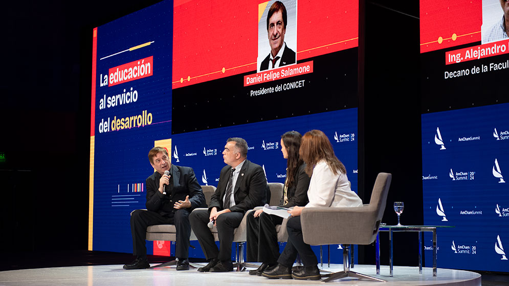 Bajo el lema “Una Argentina viable”, en AmCham Summit 2024 se abordaron temas como la situación y aspectos relevantes de la relación bilateral entre Argentina y Estados Unidos; el panorama económico y social de Argentina; avances, desafíos y tendencias en el sector de salud; la innovación como factor de la competitividad y desarrollo; la bioeconomía como una estrategia país; la educación al servicio para el progreso, entre otros temas, -en los que el CONICET juega un importante rol-, según destacó la cámara.