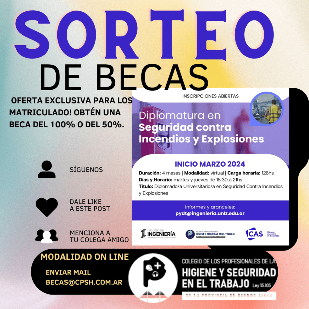 ¡Sorteo de Becas para Diplomaturas en Seguridad contra Incendios y Explosiones! ¡Estamos emocionados de anunciar un emocionante sorteo de becas para nuestras Diplomaturas en Seguridad contra Incendios y Explosiones, realizadas en conjunto con la Cámara Argentina de Seguridad!