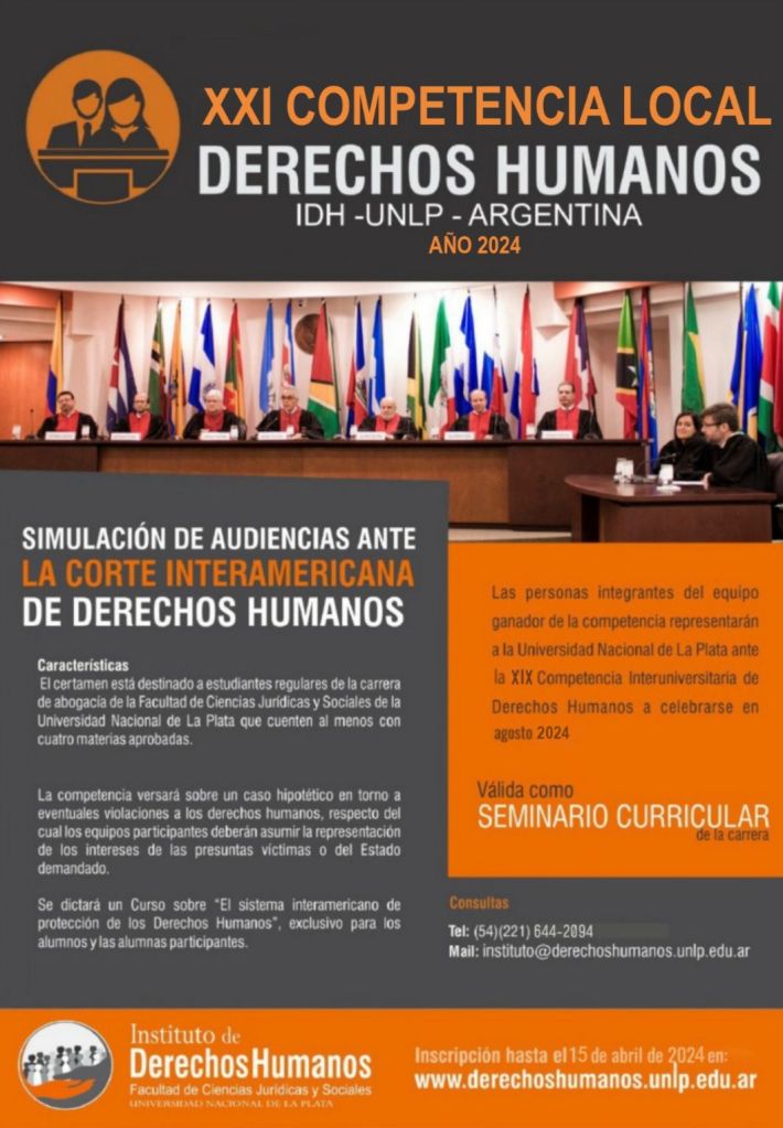 Se encuentra abierta la inscripción para participar en la Edición XXI de la Competencia Interna de Derechos Humanos, organizada por el Instituto de Derechos Humanos de la FCJyS.