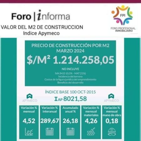 Gran La Plata: el valor del metro cuadrado de construcción promedió en marzo $1.214.258,05