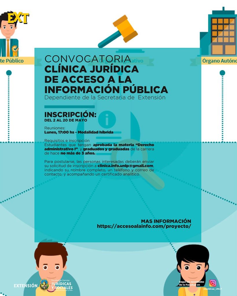La Secretaria de Extensión Universitaria informa que se encuentra abierta la inscripción para formar parte de la «Comisión de Acceso a la Información Pública» del Programa Clínicas Jurídicas.