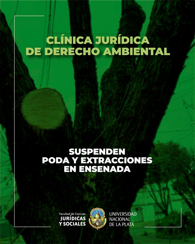 Vecinos de Ensenada representados por la Clinica Jurídica de Derecho Ambiental, dirigida por el Prof. Aníbal Falbo, lograron suspender la poda y extracción del arbolado público de ese municipio.