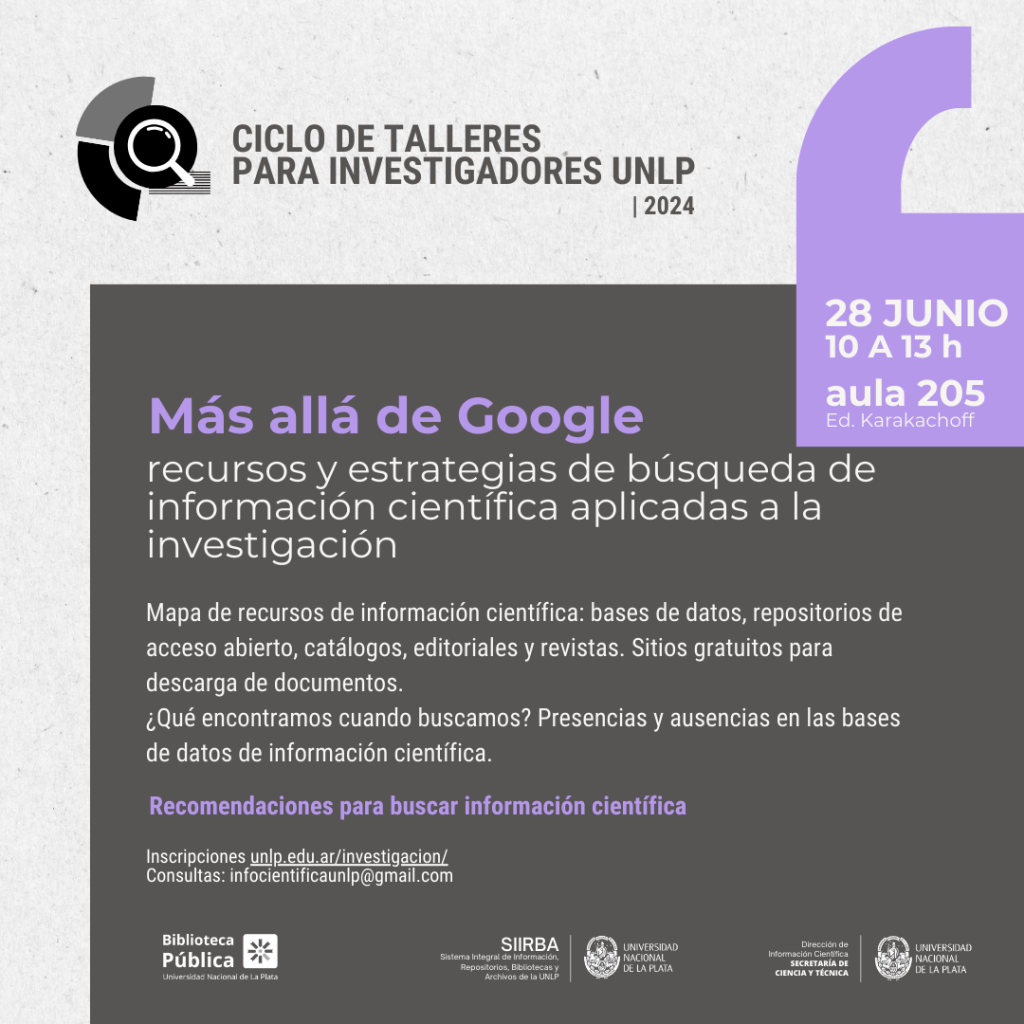 → Taller 3: Más allá de Google: recursos y estrategias de búsqueda de información científica aplicadas a la investigación del Ciclo de talleres para investigadores