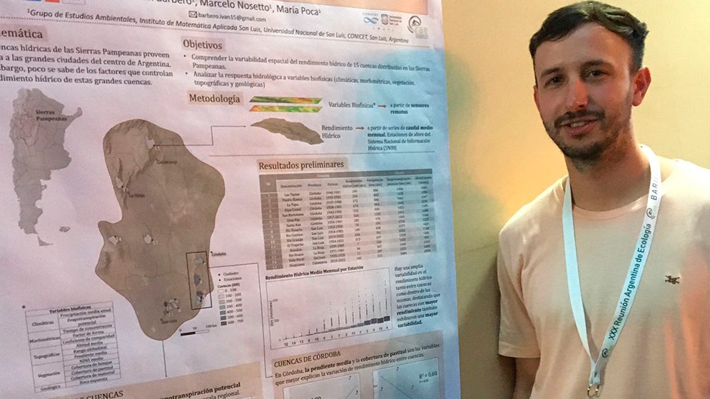 El geólogo e integrante del Grupo de Estudios Ambientales perteneciente al Instituto de Matemática Aplicada de San Luis, Iván Barbero fue destacado por su trabajo en innovación en la gestión de recursos hídricos.