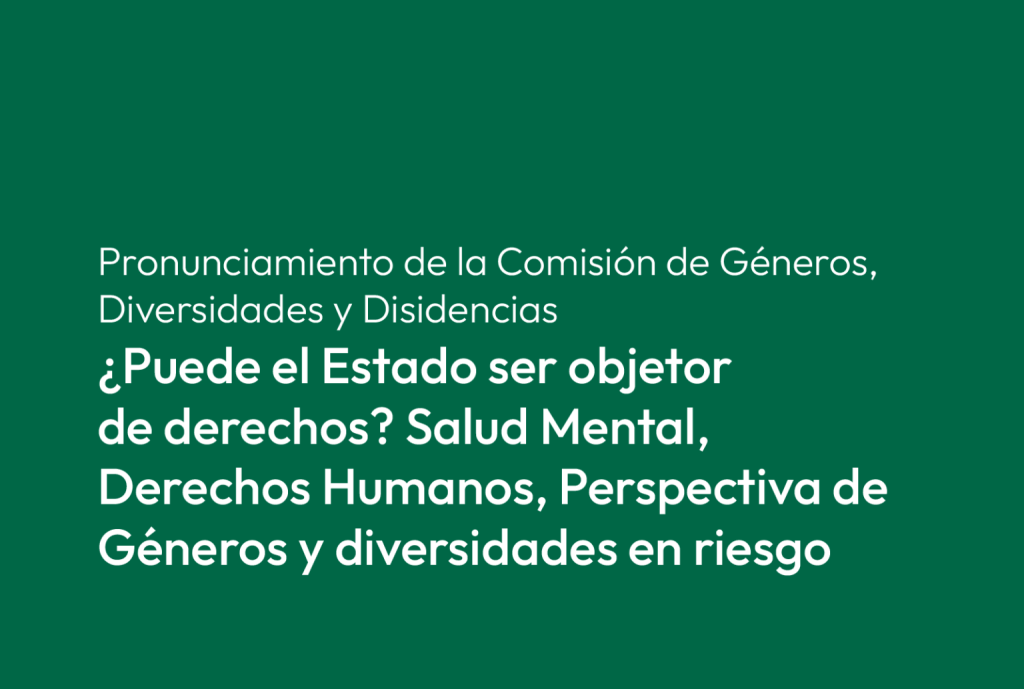 El Estado Argentino decide darle la espalda a la protección de la Salud Mental de la población, a la defensa de los derechos humanos, a los derechos humanos de las mujeres, y personas LGBTTTIQNB+, a las personas con discapacidad o afectadas por consumos problemáticos u otros padecimientos mentales.