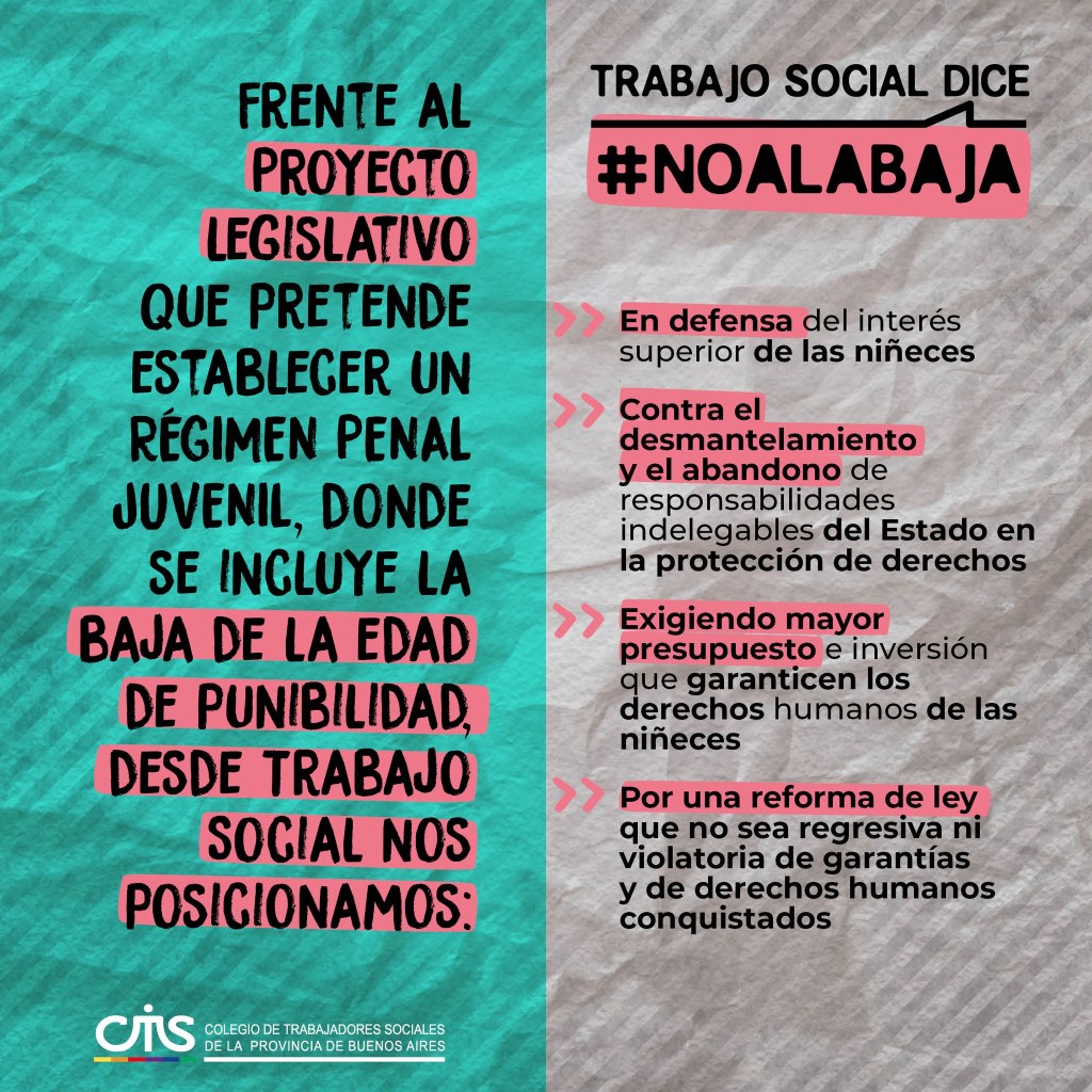 30 julio, 2024 clipurbanodenoticias Frente al proyecto legislativo que pretende establecer un régimen penal juvenil, el CATSPBA reafirma: «No a la baja» / Fuente: Colegio de Trabajadorxs Sociales de la Provincia de Buenos Aires / Comparte esto: Compartir en X (Se abre en una ventana nueva) X Comparte en Facebook (Se abre en una ventana nueva) Facebook Más Compartir en LinkedIn (Se abre en una ventana nueva) LinkedIn Compartir en Tumblr (Se abre en una ventana nueva) Tumblr Haz clic en Pinterest (Se abre en una ventana nueva) Pinterest Compartir en Telegram (Se abre en una ventana nueva) Telegram Compartir en WhatsApp (Se abre en una ventana nueva) WhatsApp Me gusta Cargando...
